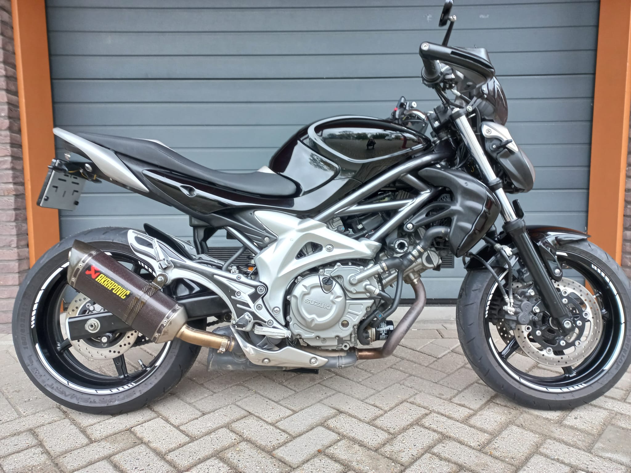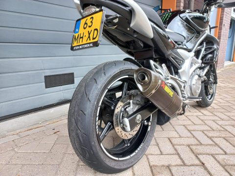 Hierbij te koop een zeer nette Suzuki SFV 650 Gladius uit het jaar 2012. Er staan 27682 km’s op de teller. De Suzuki is voorzien van nieuwe olie en een nieuw oliefilter. De ketting en tandwielen (schoongemaakt en in het vet gezet) zijn in goede conditie. Extra zijn de handkappen en de Akrapovic uitlaat. Deze uitlaat heeft een zeer mooie sound.